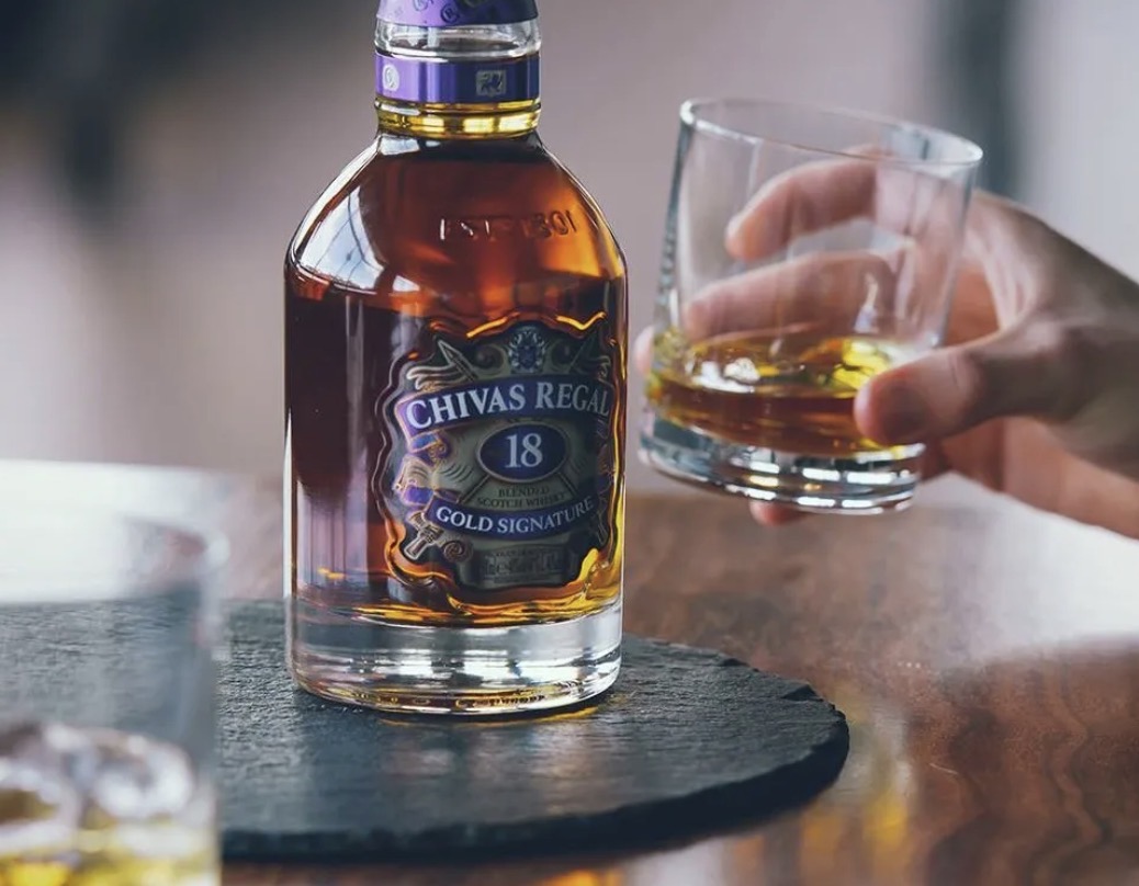 Se trata del blended Chivas Regal 18 años. El whisky, que fue distinguido por el Beverage Testing Institute, reúne más de 20 whiskies single malt de distintas regiones de Escocia, sobre una base de malta Strathisla.