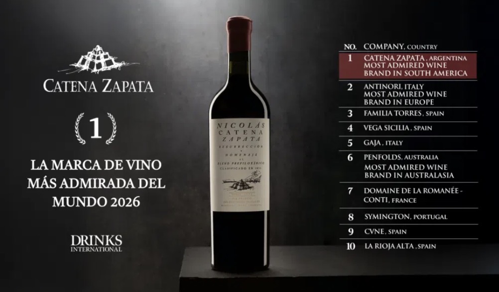 Catena Zapata volvió a escribir historia en el mundo vitivinícola internacional. La bodega familiar mendocina, fundada en 1902, fue nuevamente nombrada como la Marca de Vino Más Admirada del Mundo (World’s Most Admired Wine Brand) en el ranking 2026 elaborado por Drinks International. El anuncio se realizó hace unos días y representa el segundo título consecutivo para la bodega argentina (que también había ganado en 2025). Esa es la tercera vez en la historia que llega al primer lugar. La bodega mendocina había obtenido la distinción por primera vez en 2020.
