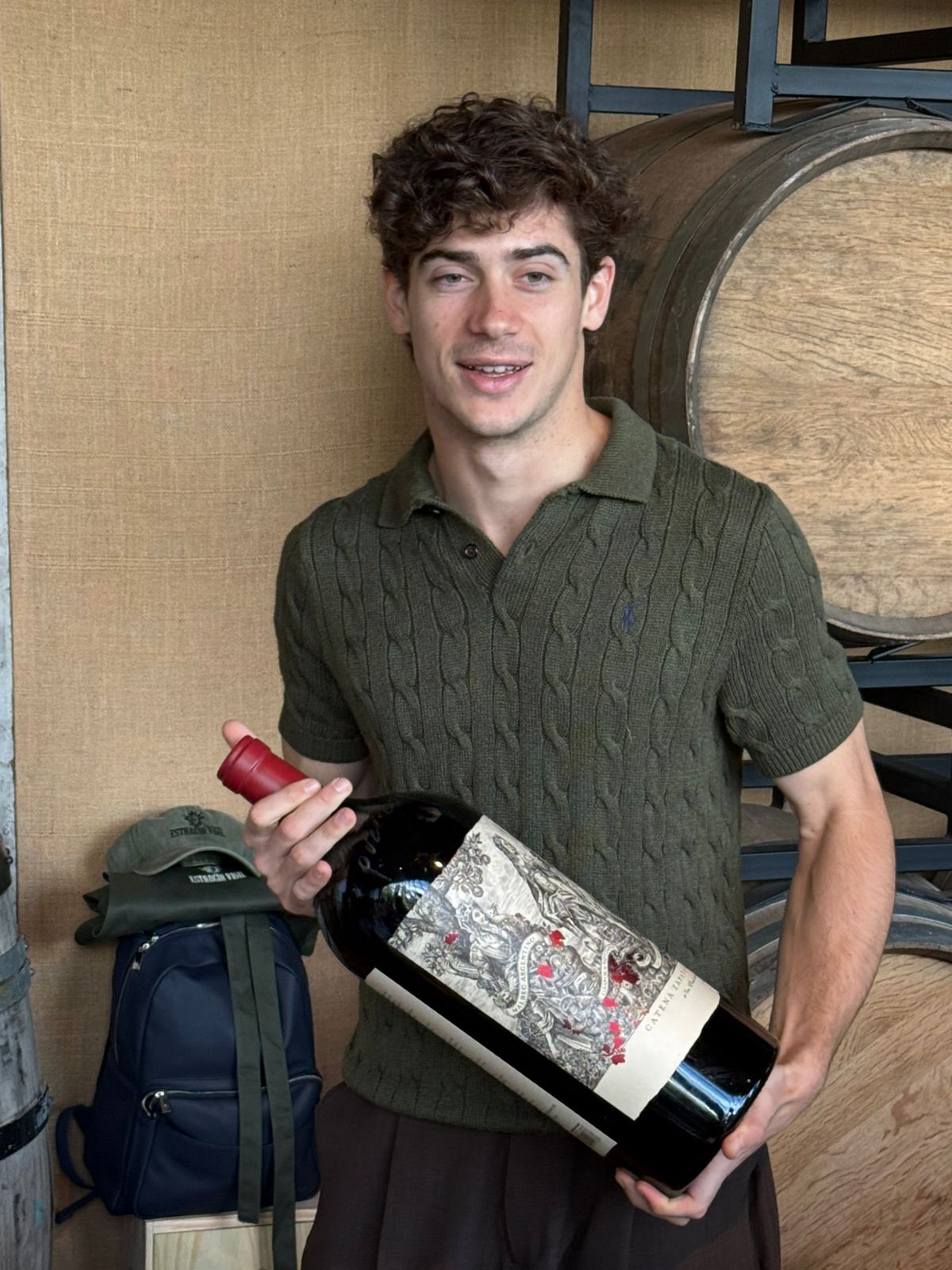En su paso por el restaurante de Alejandro Vigil el sábado, el piloto de F1 recibió dos obsequios con una dedicatoria del enólogo: un box que contenía su último vino premiado con 100 puntos (As Bravas Malbec 2018) y un botellón de seis litros de Malbec Argentino, de la bodega Catena Zapata.