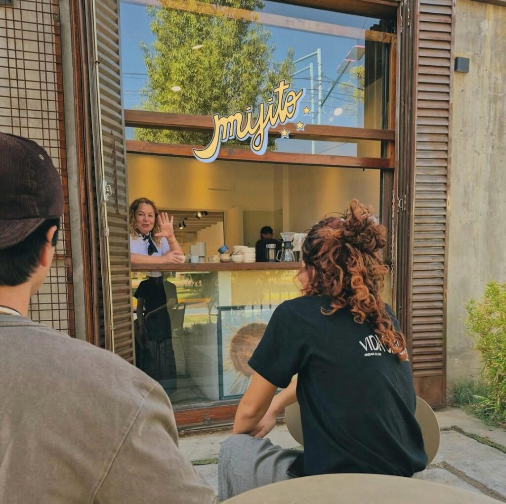 Justo frente a Palmares, dentro del Parador Vitta, un cartel pequeño anuncia lo que adentro se siente grande: Mijito. Este nuevo café propone un viaje a lo simple, con una estética que mira al pasado sin dejar de lado el presente. El salón es cálido, con rincones pensados para quedarse. Además de la barra (que permite conversar con el o la barista, aprender sobre los orígenes del café y dejarse guiar por sus preparaciones), hay un espacio cerrado con una mesa para seis personas, ideal para ir con amigos, familia o trabajar en grupo; también hay un par de mesitas más íntimas. Afuera, algunas mesas sobre la vereda reciben a los ciclistas que vienen por la bicisenda o a quienes prefieren el sol.