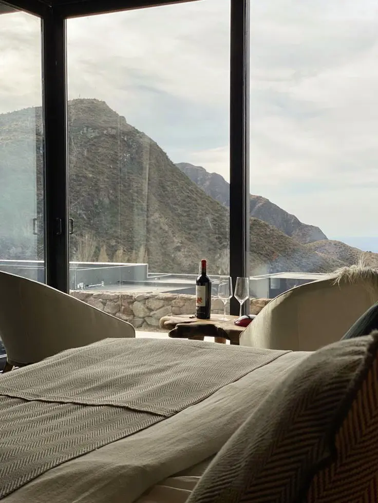 Según el sitio web del hotel, el lugar donde queda ubicado destaca por la «pureza del aire, y estaciones del año marcadas con encantos y colores únicos. Animales autóctonos característicos de la zona como guanacos y cóndores que se encuentran y evocan los pueblos originarios». En tanto, acerca de la construcción de las habitaciones y los diferentes espacios que conforman el complejo, aseguran: «la arquitectura moderna y paisajismo mantiene la vegetación originaria contemplando construcciones de pircas que evocan las antiguas construcciones de los primeros habitantes».