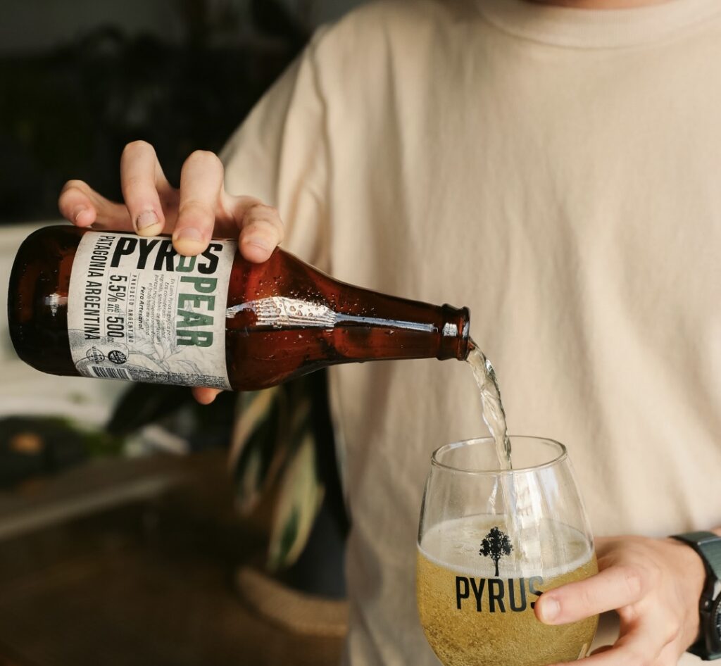 Otro de los proyectos patagónicos interesantes es Pyrus, sidra artesanal que ofrecen dos variedades. Una de ellas es Pyrus Cider de manzana clásica, perfecta para maridar con platos salados y navegar entre los salado y dulce. Y Pyrus Pear, a base de peras patagónicas. Ambas con una graduación alcohólica entre 5,5 y 6 grados. Certificadas 100% vegana y libre de gluten.